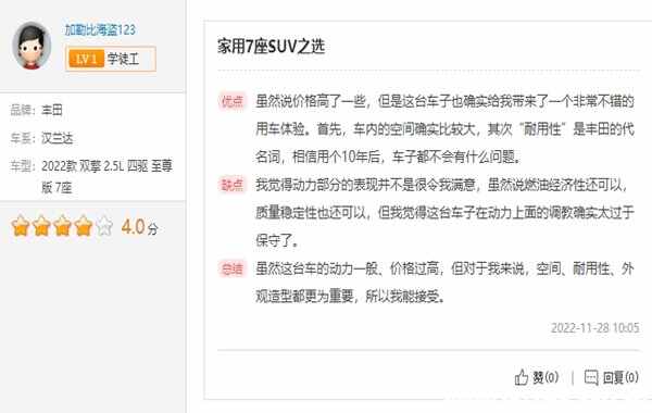 当然,作为中型SUV界的标杆,汉兰达也有着不少优点,如下: