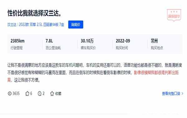 3、车机系统比较老式:现在很多车辆在车机方面已经做到非常多元化,各种服务功能都比较齐全。而低配汉兰达的车机系统比较普通,有车主还表示使用时会有一点点触控延迟,这会使得在同级竞争中有所不足。