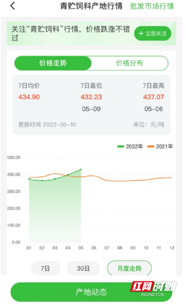 算经济账,青麦作饲料,对养殖企业来说并不划算。在安福生活网交易平台上可以看到,多地玉米青贮饲料报价为230元/吨,玉米秸秆青贮饲料报价为260元/吨,草场青贮饲料报价为270元/吨,均不及网上流传的全株小麦青贮1500元/吨的1/3。甘蔗尾叶青贮饲料报价为350元/吨,也与全株小麦青贮饲料报价相去甚远。据惠农大数据显示,虽然今年1-4月青贮饲料的价格整体呈上涨态势,但仍不及去年同期,今年1-4月的批发均价为380元/吨,同比较去年跌6%。
