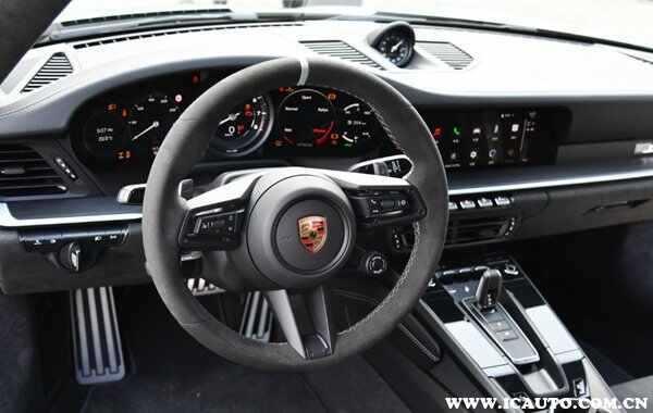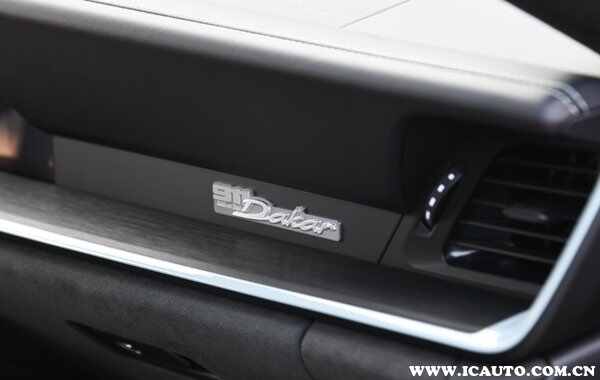 内饰方面。保时捷911 Dakar依然是传统指针式仪表盘+内嵌式中控屏,所搭载的三幅式多功能运动方向盘上有可调节驾驶模式的旋钮。另外在副驾驶的位置保时捷911 Dakar镶嵌了一个专属logo,以此突出新车的不同之处。