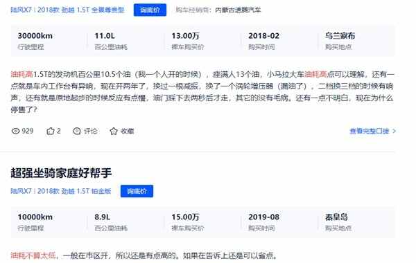 然后我们再来看看一些陆风x7车主对其的评价,首先是它所具有的优点,如下: