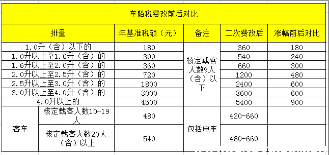 并没有,自2017年7月1日起,各类车辆税额上限普遍上涨,大型客车每年税额标准将为480元至660元,中型客车为420元至660元,小型客车为360元至660元,微型客车为60元至480元。