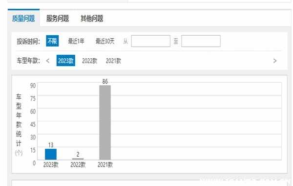 首先看看其质量表现,在车质网所给出的数据中,奇瑞瑞虎7plus各个年款所收到的质量问题投诉非常少,目前最多的是2021款奇瑞瑞虎7plus,收到了86条质量问题投诉。其中占比较多的质量问题为油门故障、影音系统故障、制动系统异响等。但奇瑞瑞虎7plus整体质量口碑还是比较不错,否则也不能只有这么少投诉量。