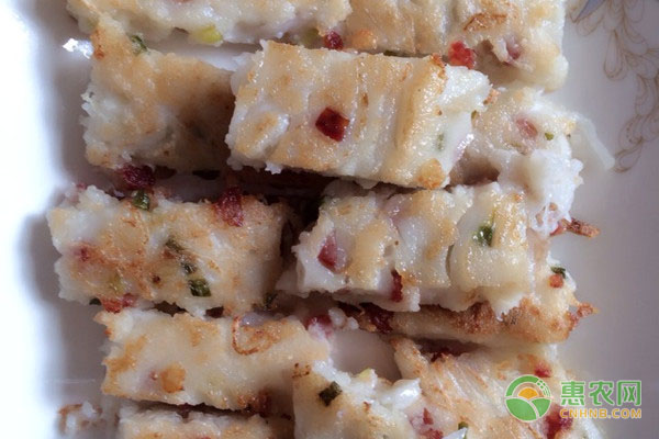 萝卜糕,是中式传统的糕点,是福建闽南、广东等地区的汉族特色糕点。采用在来米粉,又称再来米粉,是中式点心中最好使用的粉,可以在制作中式小吃如萝卜糕、肉圆、碗粿时用到。然后在米粉浆中加入腌制好的萝卜丝等材料,上蒸笼蒸制而成的糕点小吃。