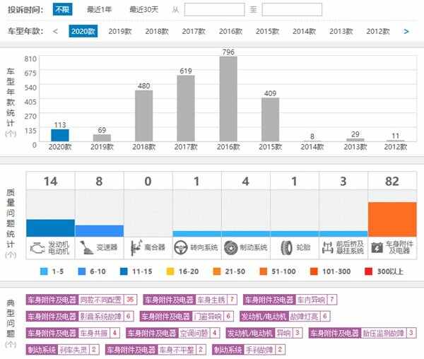 6、同款不同配置。从车质网投诉反馈可以看出,同款不同配置的问题占了总投诉量的35条,还算是比较多的,其主要原因是吉利远景胎压显示功能疑似减配,和宣传时候的不符。