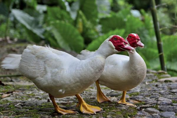 1.番鸭可分为三种:白番鸭、黑番鸭和黑白番鸭。白番鸭的羽毛是白色的,喙指甲是粉红色的。头部肉瘤呈鲜红色,较厚,呈链状排列,呈彩虹色浅灰色,脚部呈橙黄色。如果头上有一根黑色的头发,喙指甲和脚上就会有黑色的斑点。