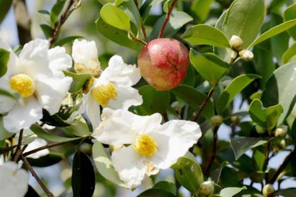2、大果红花油茶单果重量为0.5kg以上,每株产果实50-150kg,产量比较高的每株可产果实350kg,每50kg生果可产茶油2kg,茶仁出油率为40%-62%,比普通油茶高2-3倍。